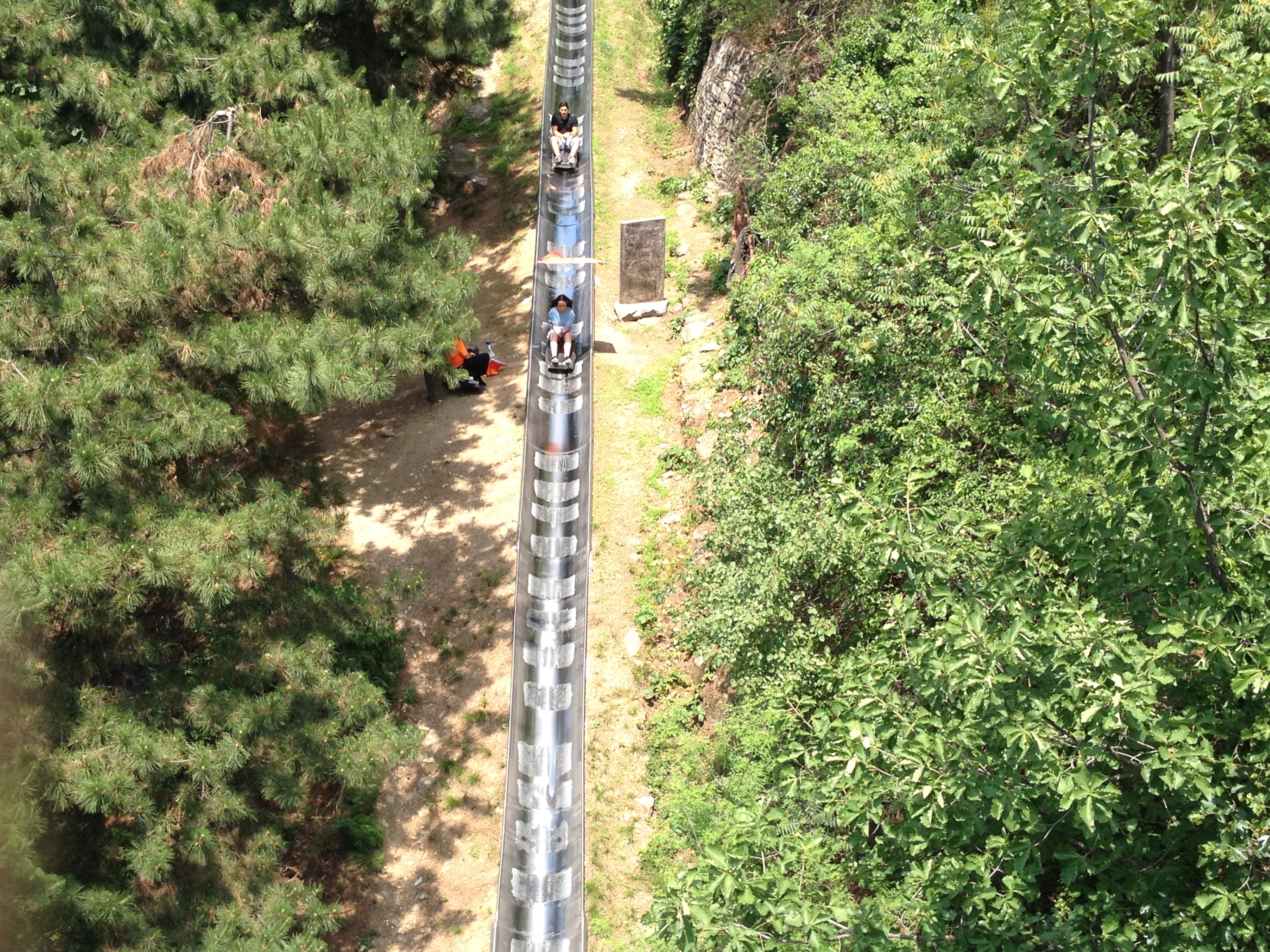 There’s a toboggan ride back down the wall, which makes no sense really but sure why not. I hop in thinking it’s going to be a tame, gentle ride back down to the base. Push the lever down to go faster, pull it back to slow down. Simple. Lever to the floor. I absolutely gun it down the slopes. Brilliant fun, with the announcements to slow down and be careful. What’s the worst that could happen. Then I remember where I am, China, this is a country where I will be liable for any damage caused if I launch myself from the track. The way it should be really. Anyway, I may have been a bit over enthusiastic about the whole speed thing as I catch up with the people who went ahead of me. Which is fine, but I didn’t see anyone set off before I did. I didn’t even see people walking down the steps to the start point. Ah well, no real harm done. It’s a fun way back down but somehow doesn’t really fit in with the general atmosphere of the The Great Wall.