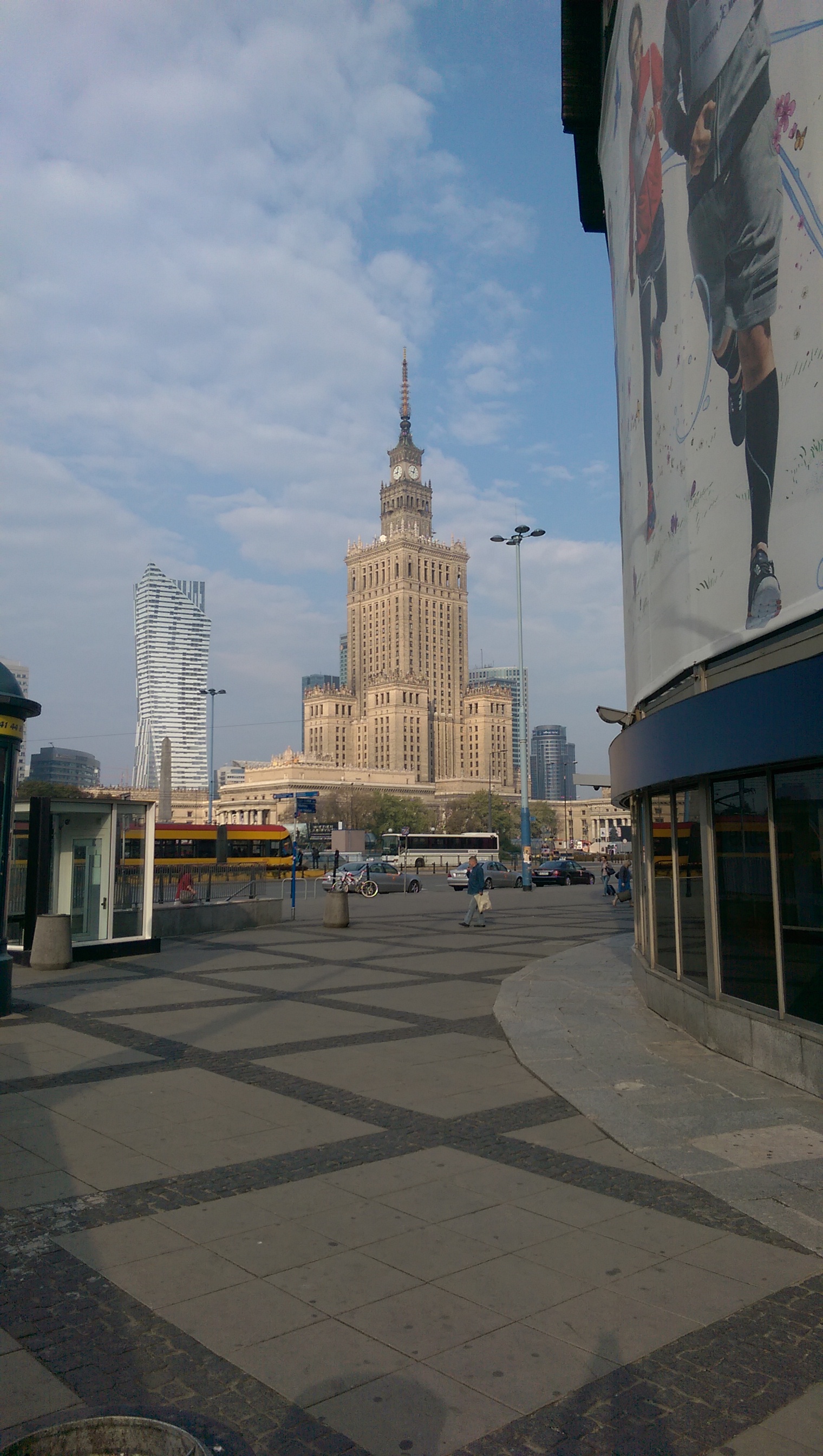 We head out toward the Old Town in the hopes of getting on a walking tour or something. Of course we get a little lost, which if I’m honest I’m delighted by. I love aimlessly wandering around somewhere I’ve never been. We stumble upon the Palace of Culture and Science. This is why you wander. It’s hard to miss really as it towers above the surrounding area at 237m of height. Completed in 1955 as a gift from the Soviet people to Poland and referred to lovingly as ‘Stalin’s Syringe’ by locals.