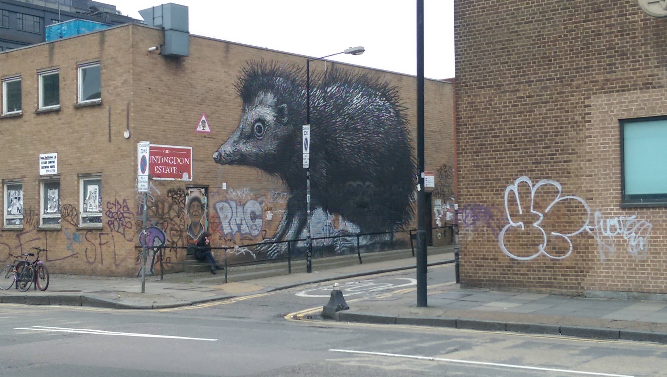 Afterwards we hit Brick Lane for some food from the stalls. I’ve been thinking about lamb since I caught a scent of some cooking, slowly, in the markets yesterday. Orla and I get a lamb and halloumi wrap, it’s the messiest thing I’ve ever eaten and I have to ask for assistance obtaining my napkin which I cleverly stored temporarily in the inside pocket of my jacket. Pure genius. Good lord it’s some delicious food though, even if it turns my hands a slightly yellow hue for a few hours. Full and happy, we make our way to The Commercial Tavern through some shipping containers masquerading as bars and restaurants where we’re informed we need to buy food to sit inside. We can buy drinks and ‘find’ a seat outside if we’d like. We say, sure, we’ll order chips or something because they have the Leinster match on inside. No no, we need to order something much more substantial. Alright, fuck you buddy. The rejection leads us toward some interesting graffiti however, so it actually worked out well for me. The Commercial Tavern is far better anyway. No TVs, some jazz and soul on the speakers at the perfect volume to enjoy but still be able to chat and have a laugh. Man I’m getting old.